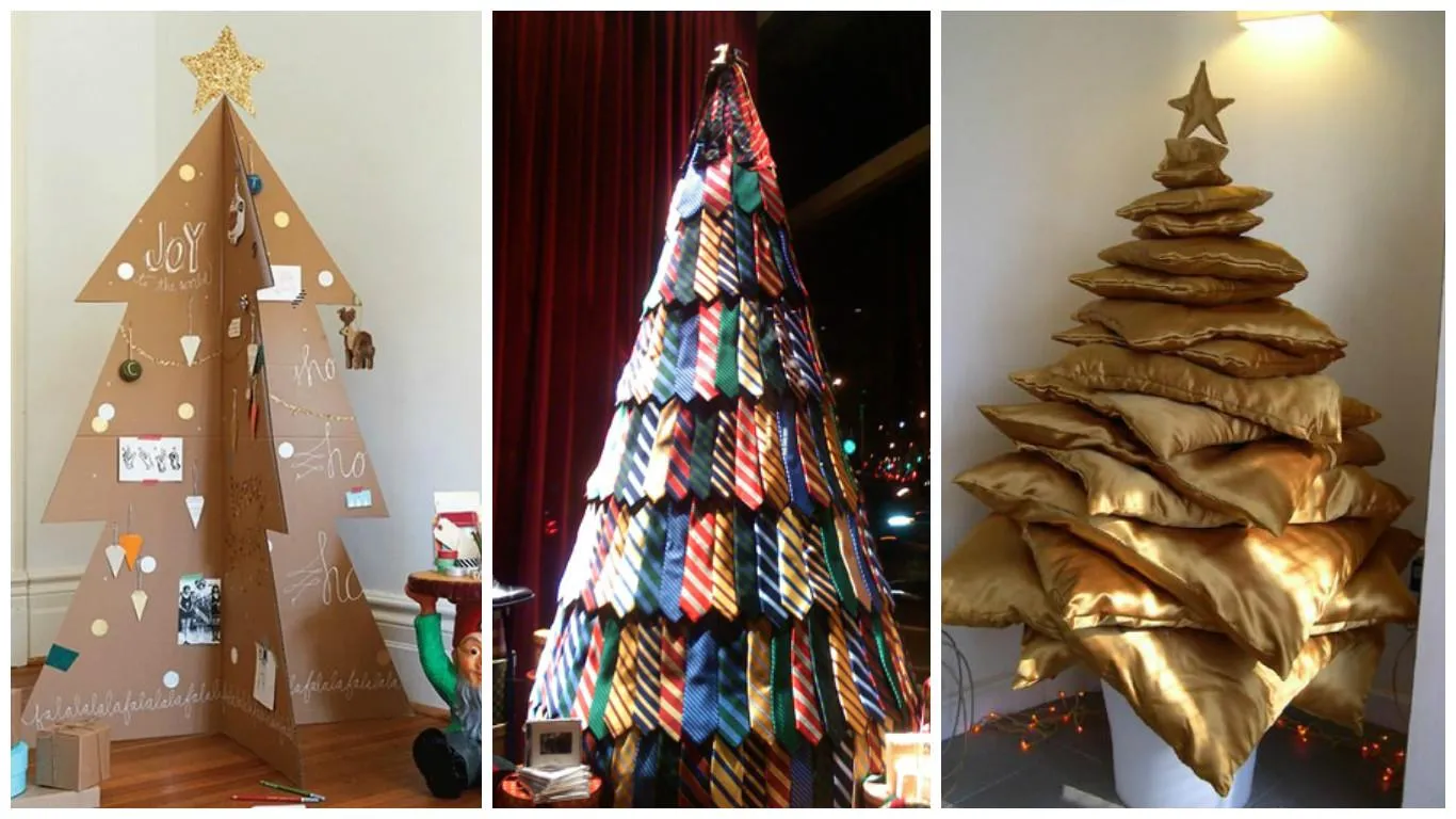 Елку из предметов в формате 3D можно сделать из подушек, галстуков и многого другого.