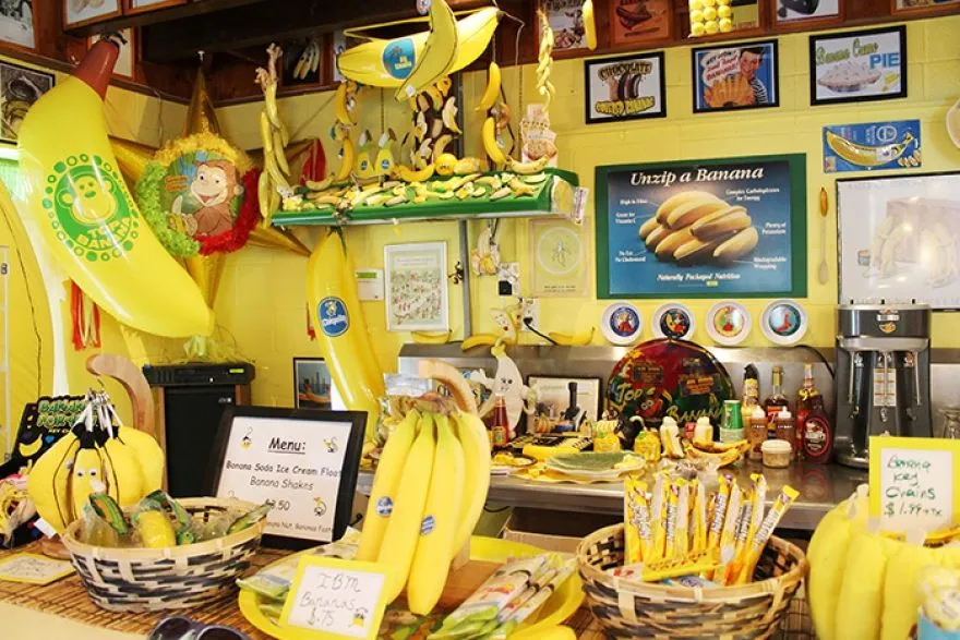 В Музее бананов есть бананы из стекла, мыла, дерева, керамики и других материалов, а также виды различных банановых конфет и напитков. Кроме того, здесь есть диваны и софы в виде бананов.