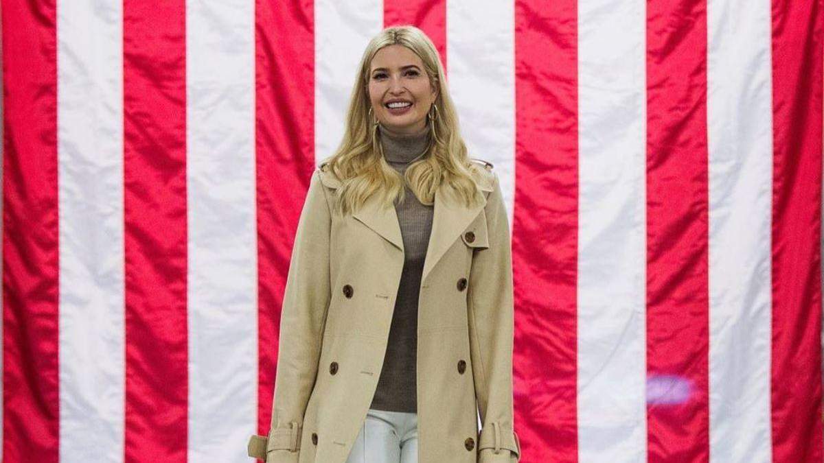 В новом аутфите Иванки, казалось бы, нет ничего лишнего. Женщина соединила бежевый классический тренч с белыми брюками со стрелками и коричневой водолазкой. Образ дополняют так же бежевые лакированные туфли-лодочки.