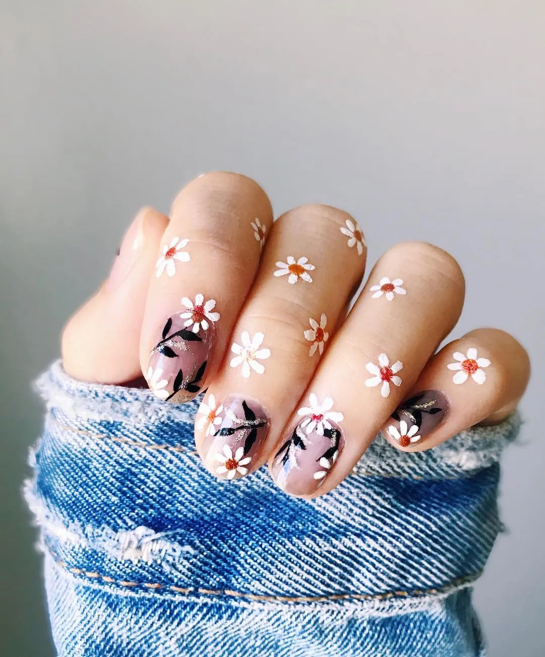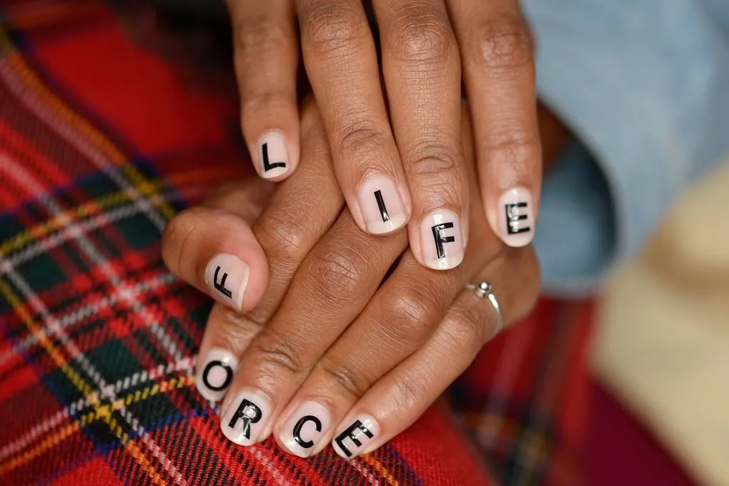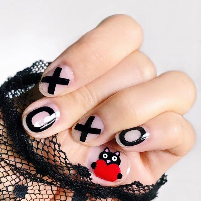 Также еще одним модным трендом является сочетание различных вариаций рисунков и узоров на ногтях. То есть чем смелее дизайн – тем лучше! Вы можете писать важные слова, рисовать контуры ваших любимых цветов, символов модных брендов или геометрических фигур.