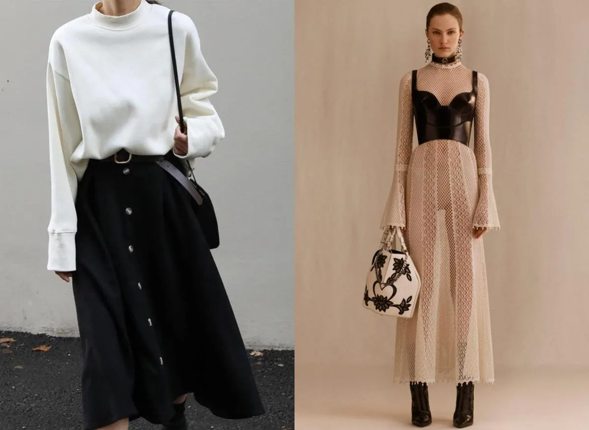 Классическое сочетание белого и черного никогда не выйдет из моды. Поэтому обратите внимание на минималистичные вещи. Идеально сочетаются белые рубашки с объемными рукавами и черные классические брюки.