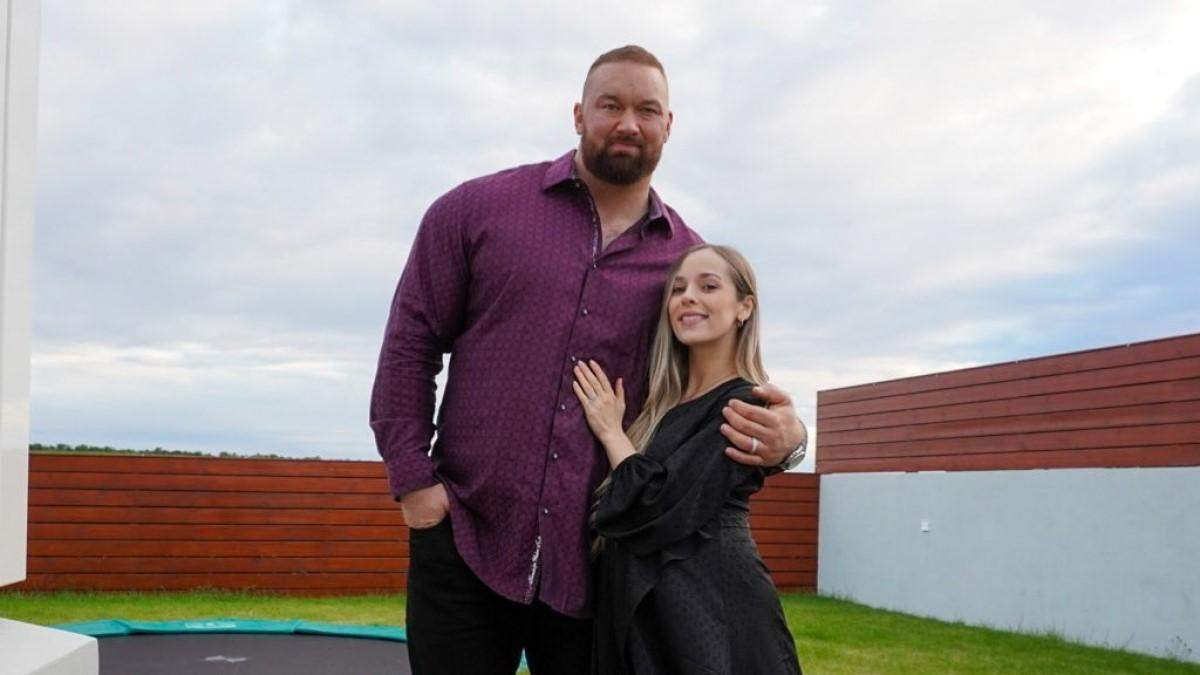 Пара встретилась в 2017 году в Канаде. Хафтор Бьёрнссон приехал в страну для участия в силовых соревнованиях. В одном из баров он познакомился с красавицей Келси, которая работала официанткой. Уже через год романа влюбленные пошли к алтарю, а в апреле 2020 года звезда "Игры престолов" объявил, что станет отцом.