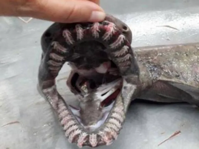 Вид плащеносной акулы жил в Атлантическом океане еще 80 миллионов лет назад, поэтому ученые прозвали находку "живой окаменелостью". У хищника есть 300 зубов, а его длина составляет 1,5 метра. Движения акулы похожи на змеиные.