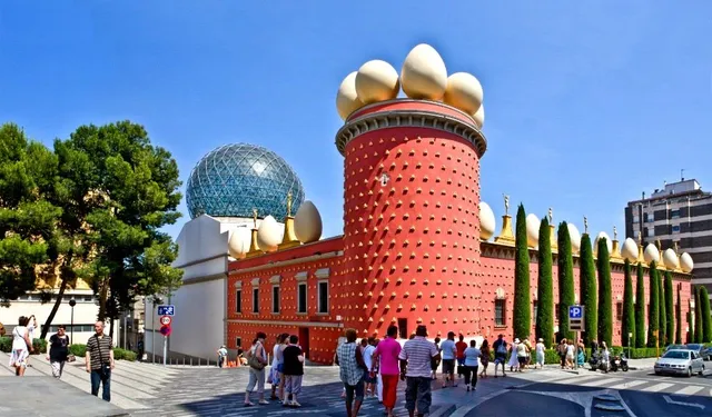 Кирпично-красный фасад музея и башня "украшены" яйцами и лепниной в виде булочек, потому что Дали считал эту пищу лучшей.