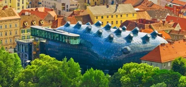 При проектировании "Кунстхаус" в 2003 году взялся британский архитектор Питер Кук с коллегой Колином Фурнье. Безумная фантазия привела двух художников к реализации инновационных идей.