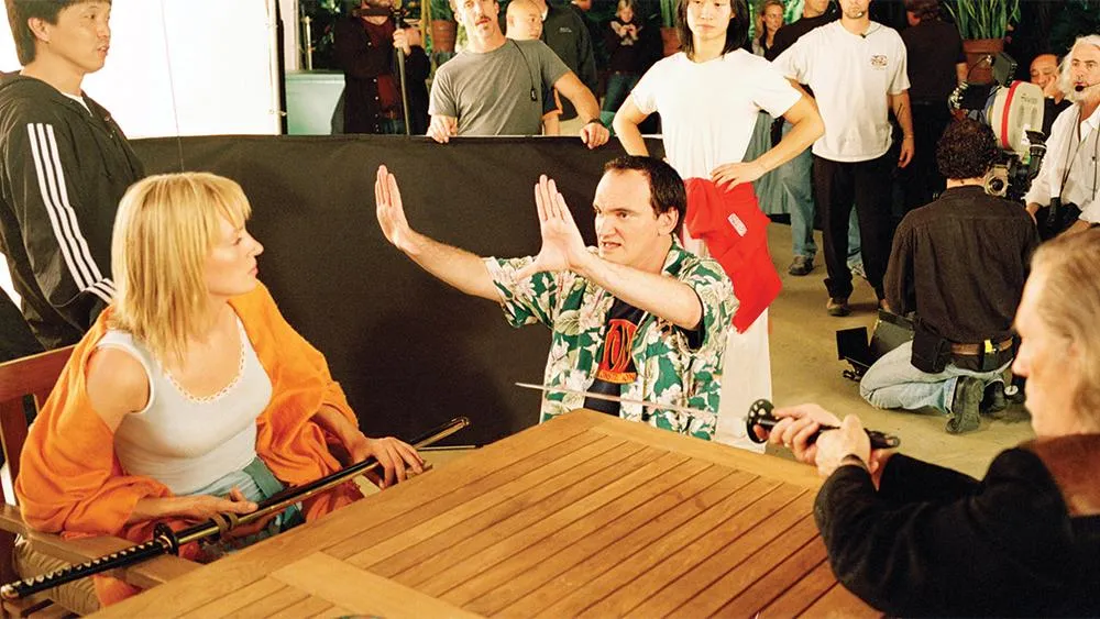 Ума Турман и Квентин Тарантино на съемках фильма "Убить Билла" (2003)