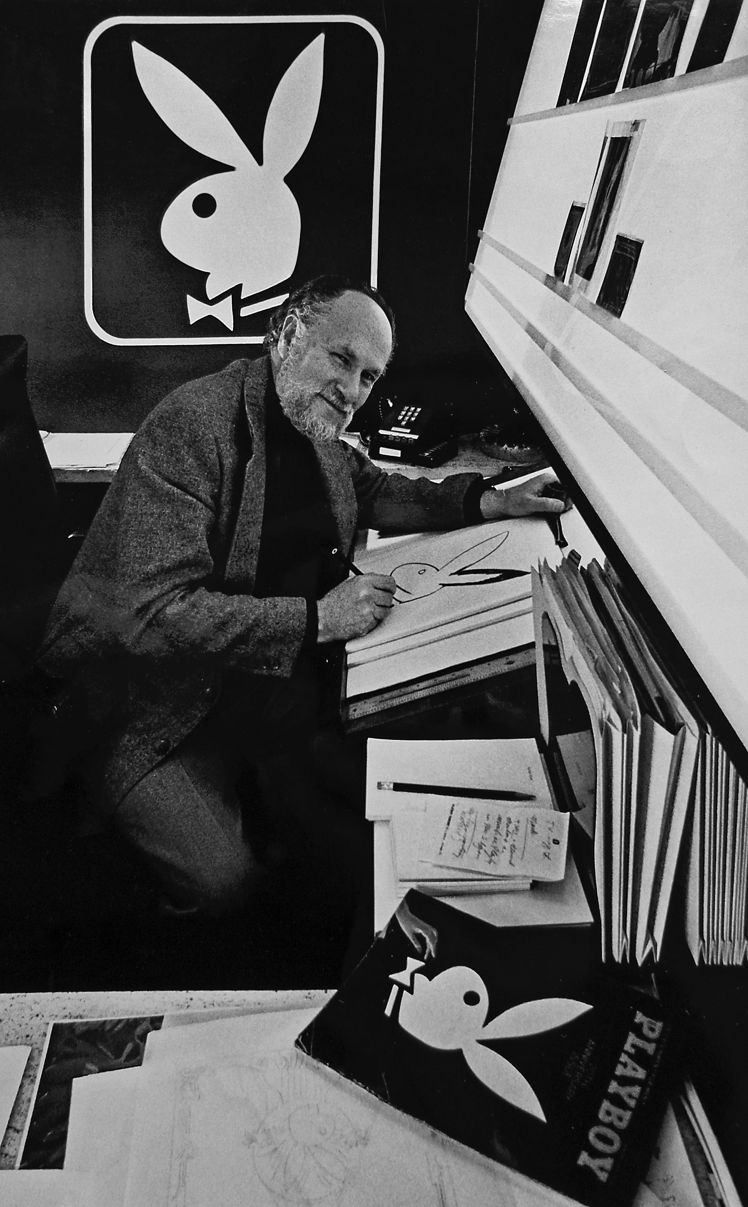 Покойный Арт Пол рисует фирменный символ-зайчик журнала Playboy