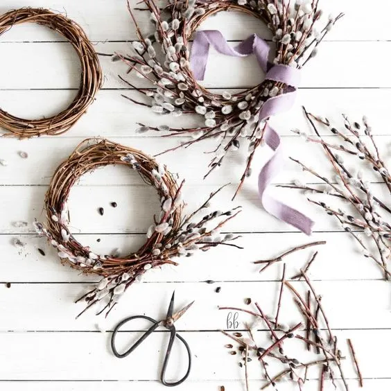 Этот способ не очень популярен в Украине, но это хорошая идея того, как можно использовать посвященное зелье – украсить дом. Для венчика сперва нужно сплести круг из веток, а уже потом добавлять ветки с котиками. Будьте аккуратны, чтобы пушистики держались на ветках.