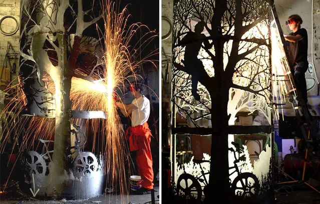 С помощью шлифовальной машины, сварки и с помощью инструментов для металла человек создает на кусках материала контуры растений, кустарников и деревьев. Одна из крупнейших его работ – Nature Delivers. Это белый грузовой автомобиль, стенки которого превратились в металлические "деревья".