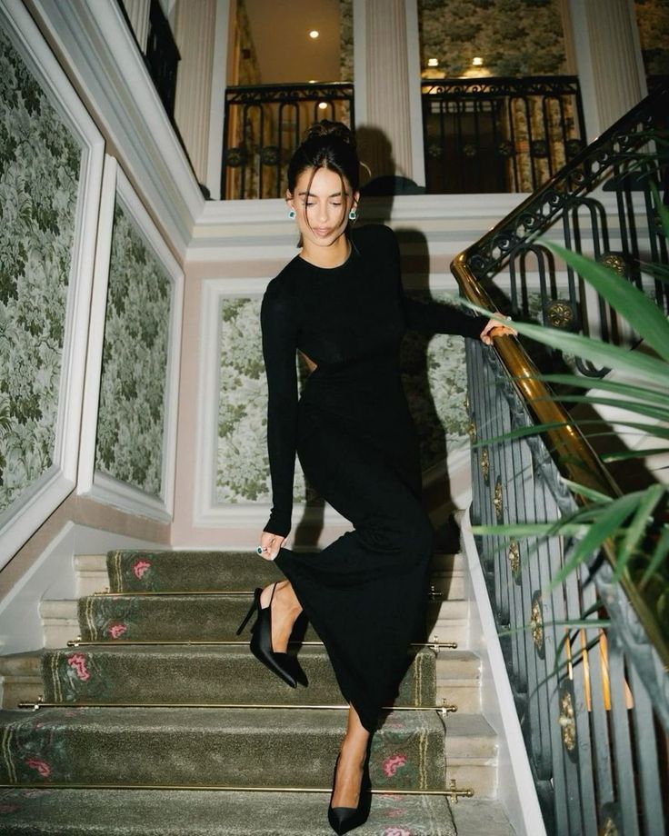 - Завжди актуальна класика – чорна сукня. Взимку краще надавати перевагу моделям із довгим рукавом і довжиною міді або максі. Доповнити образ можна підборами чи чоботами.