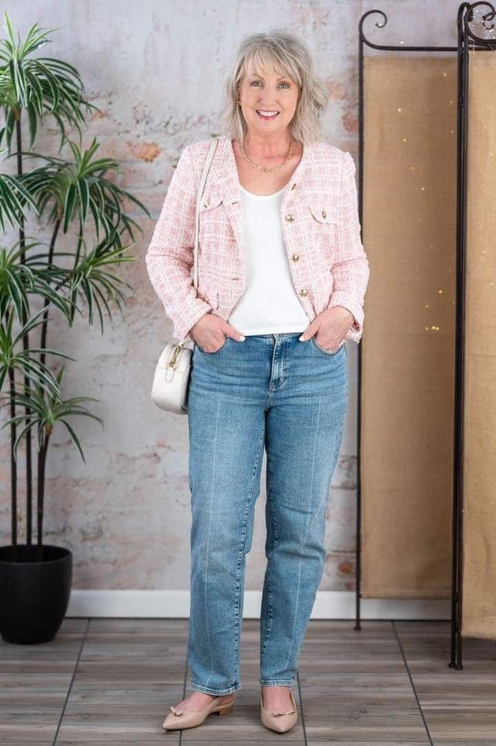 Якщо ви вагаєтесь із вибором палітри, зверніть увагу на тренд, який пропагує відома ікона стилю Грейс Ганем. Видання Who What Wear ставить її у приклад як жінку, що перетворила срібне волосся на свою головну фішку. Стилісти радять спробувати монохромні образи – коли верх і низ підібрані в одному кольорі. Це візуально витягує силует і робить його стрункішим. Цього сезону особливо виграшно виглядають глибокий червоний або насичений смарагдовий.