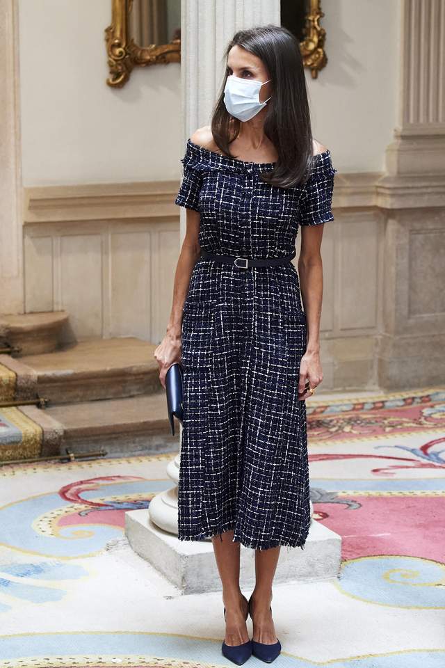Бездоганний look Летиції доповнив маленький клатч Hugo Boss. Волосся вона вклала рівно, а на обличчі зробила макіяж з акцентом на очах. Звісно, що Її Величність не забула про захисну маску, без якої за час пандемії коронавіурсу жодного разу не з'являлася на публіці.