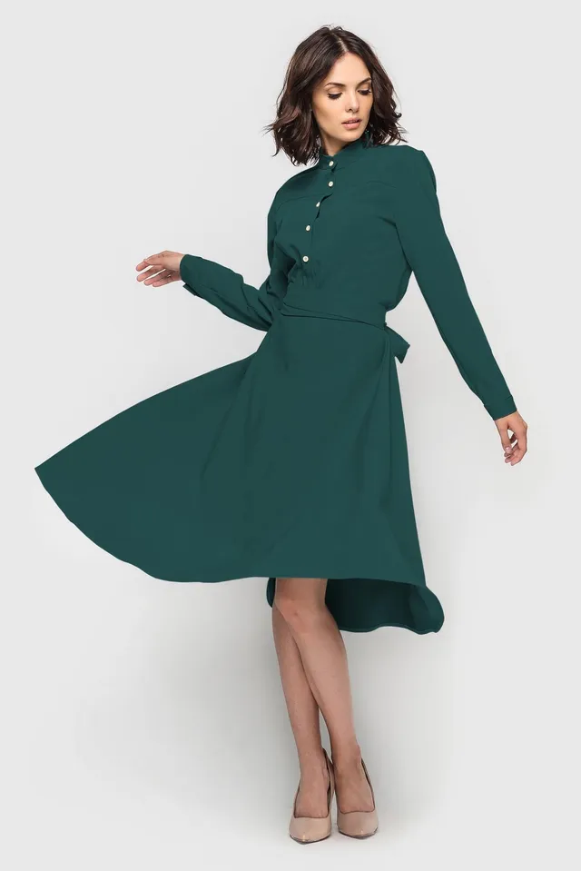Сукня смарагдового кольору в такому фасоні надасть романтичності вашому образу
