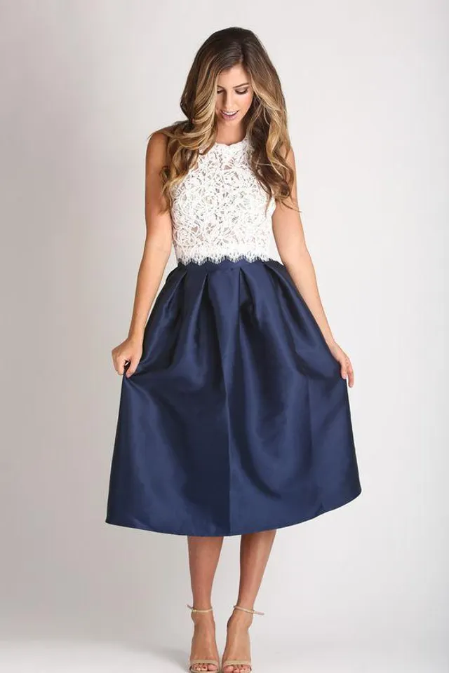 Спідниця нижче колін і мереживний верх ідеально підійдуть для сімейної вечері