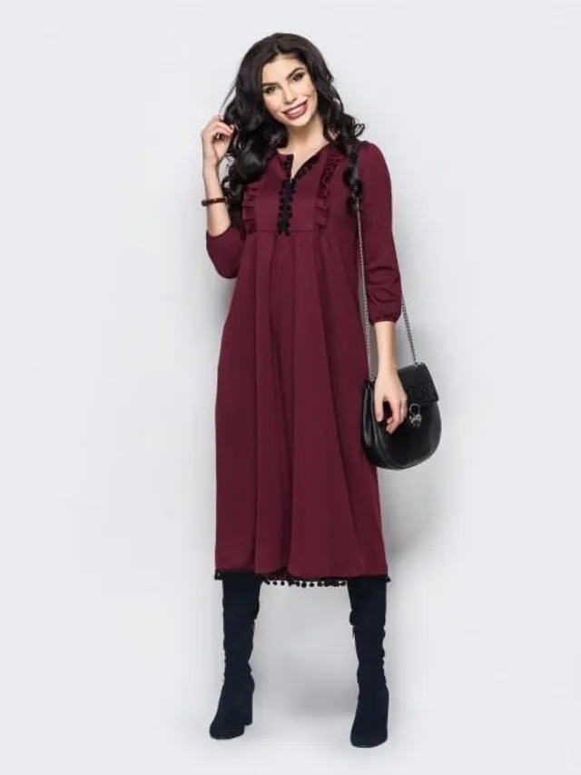 В такій сукні ви легко можете взути як тендітні туфлі-човники, так і стильні сапожки