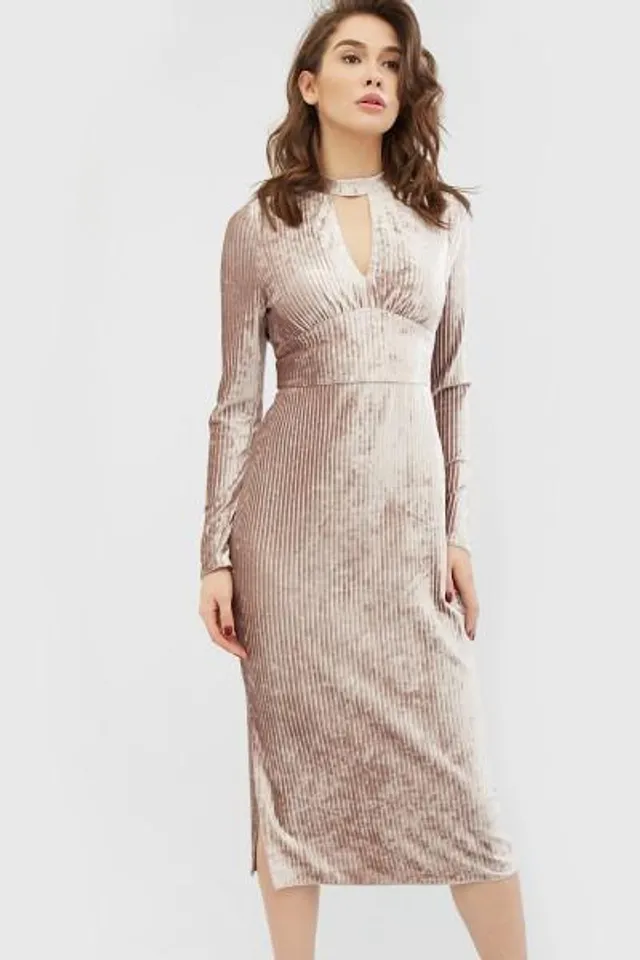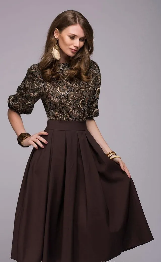 Елегантна коричнева сукня одразу додасть вам жіночності і краси в свято Різдва