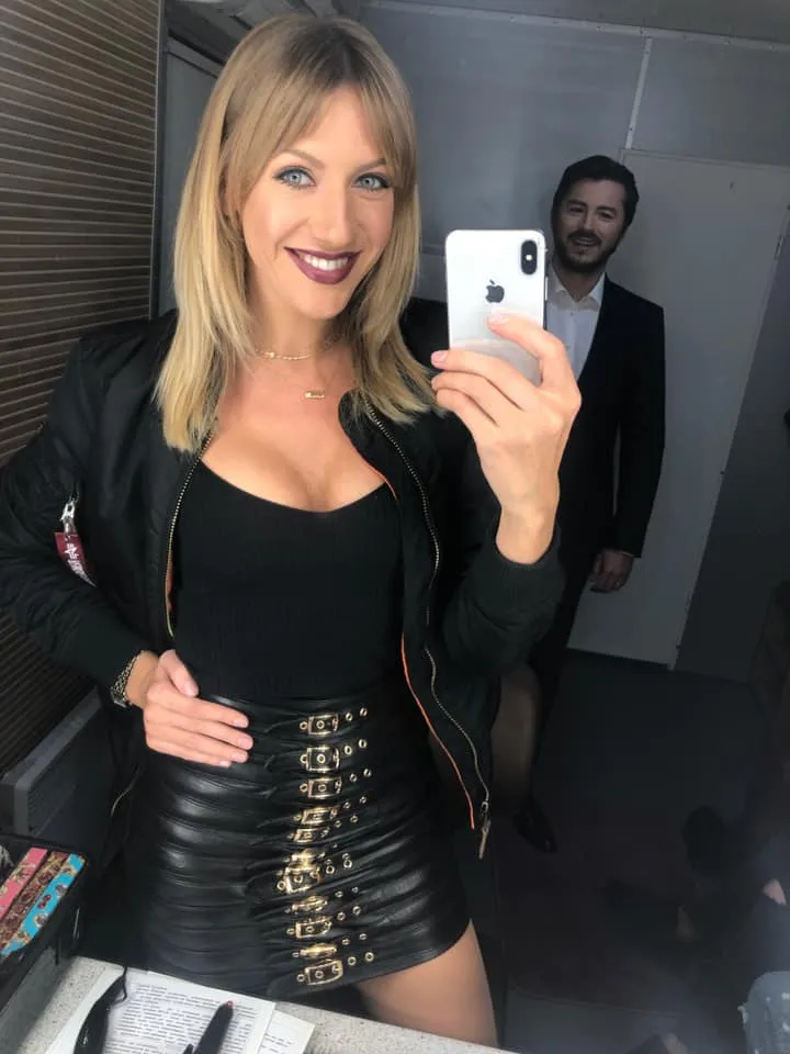Для виходу Леся приміряла звабливу шкіряну міні-спідницю зі стильними ременями, яку доповнила чорним верхом з глибоким вирізом. Завершував образ української телеведучої яскравий макіяж з акцентом на губи темно-вишневого кольору.