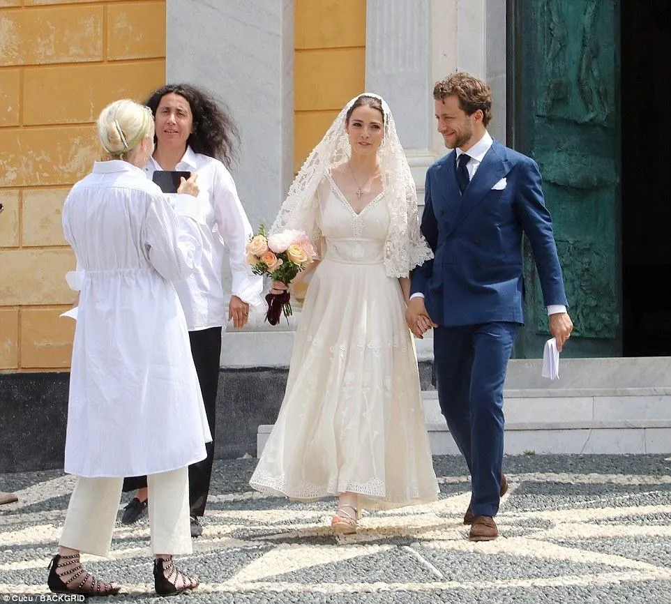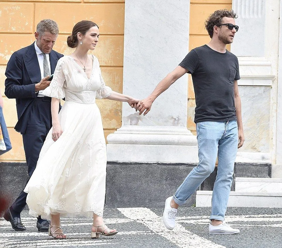 Водночас Франческо Соццані, який є сином знаменитої журналістки Франки Соццані, вбрав костюм синього кольору. До нього чоловік підібрав білосніжну сорочку та краватку. Стильне коричневе взуття завершило look зіркового нареченого.