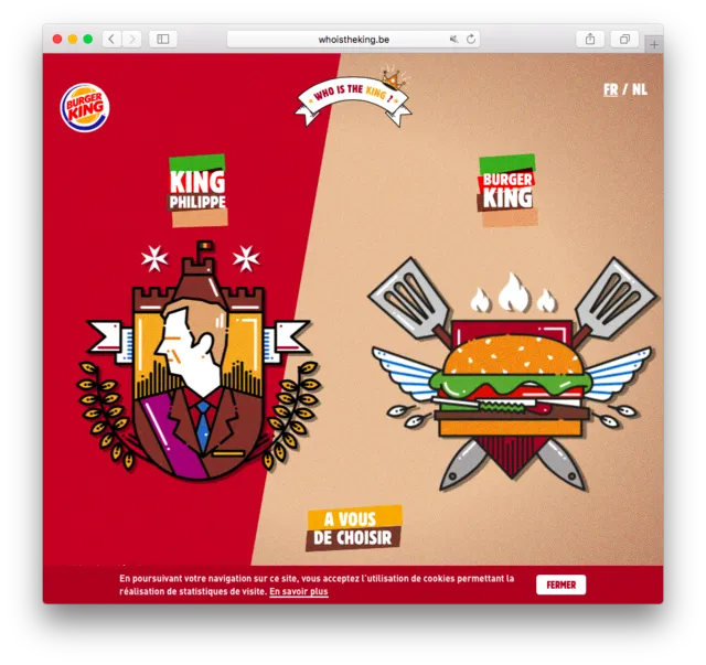 У своїй рекламній кампанії у Бельгії Burger King вирішили запустити жартівливе голосування "Хто король?", пише Meduza.