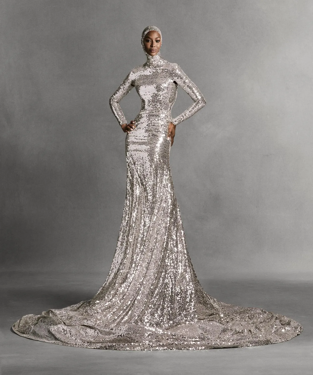 Наомі позувала також в інших розкішних образах від модних брендів Valentino, Burberry, Alaïa і Prada. Це була розкішна довга сукня з блискітками, яка закривала все тіло Наомі крім обличчя. Для іншого образу модель вдягнула чорне боді та шкіряну спідницю в тон, що обтискала стегна і підкреслювала фігуру Наомі.