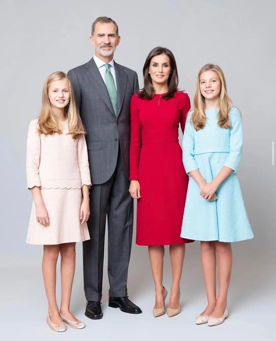 Іспанська монарша родина змінила кілька образів. На одних кадрах сім'я позує у стриманих ділових образах. На Летиції – червона сукня-футляр від модного дому Carolina Herrera. Філіп VI позує у сірому костюмі поряд з старшою донькою Леонор, яка у майбутньому займе королівський престол. Софія з сестрою були одягнені у сукні світло-блакитних та світло-рожевих відтінків, які гармоніювали з яскравою краваткою тата.