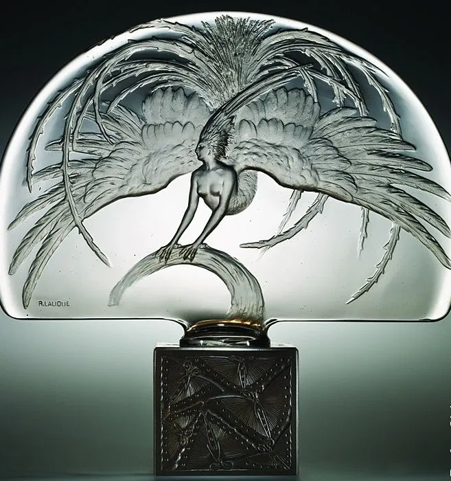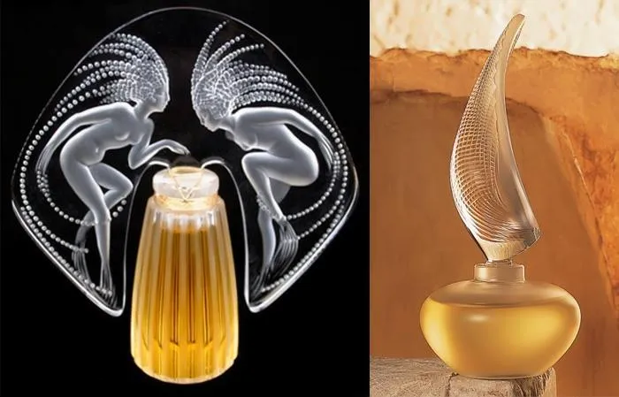 Справжня робота закипіла, коли ювелір у 1905 році познайомився з парфумером Франсуа Коті. Останньому не подобались скляні пляшки, в яких продавались його парфуми. Тож запропонував Лаліку зробити ескізи з фірмовим присмаком трьох F. Та замисли митця мав реалізовувати завод "Баккара". Тепер результати не сподобались вже Лаліку, і у 1910-ому він викупив цілий завод із виготовлення скла для своїх потреб.