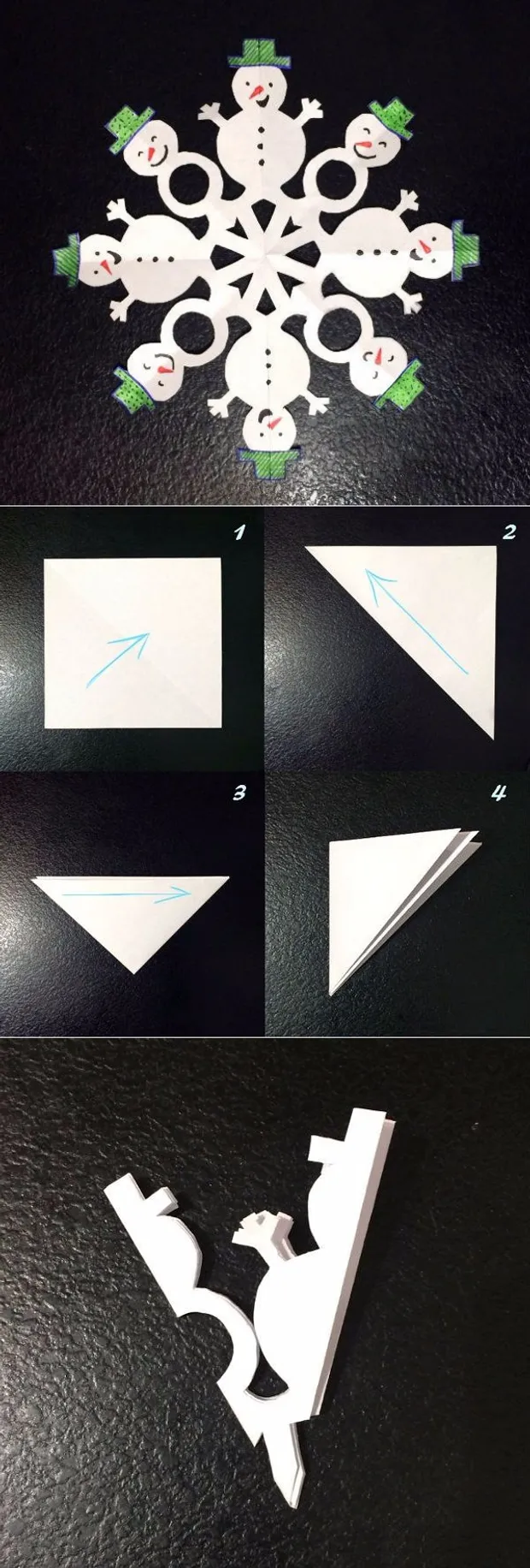 Інструкція, як вирізати сніжинку-сніговика: