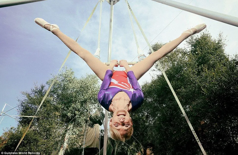 Жінка з Каліфорнії Бетті Гедхарт стала найстаршою повітряною гімнасткою у світі. Зауважимо, що їй скоро виповниться 85 років.