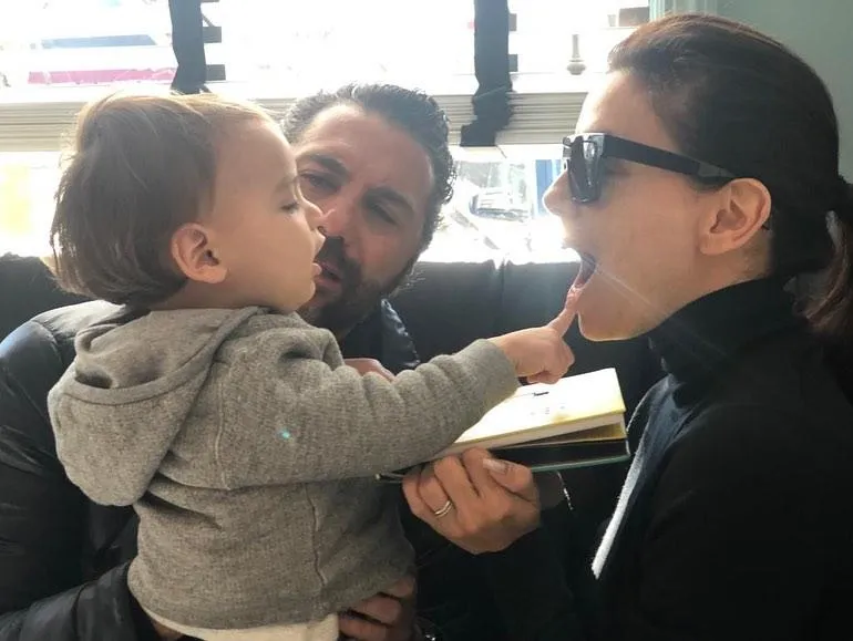 Ці кадри, на яких родина постала у повному складі, справжня рідкість навіть для акторки, яка часто тішить своїх фоловерів у мережі. На фото подружжя разом з малюком весело проводять недільний час. Татко тримає на руках однорічного сина, який, судячи з фото, навіть у такому юному віці має чималу цікавість до книжок.