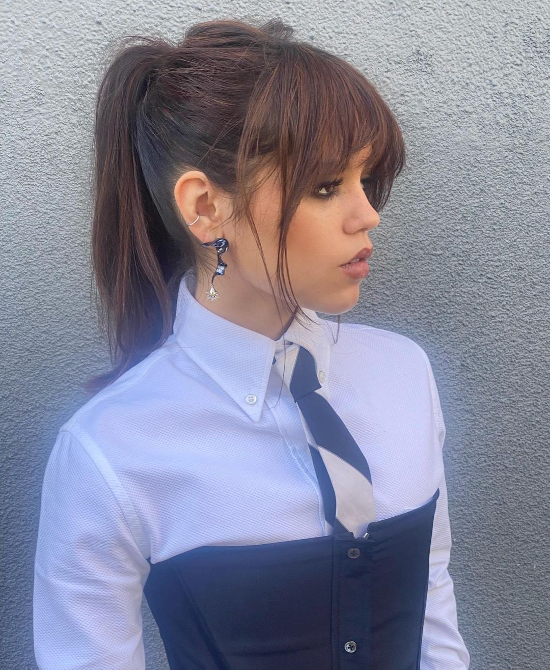 Найперше, що спадає на думку – розпустити волосся й гарно вкласти. Як саме – орієнтуйтеся від власних побажань. Власницям короткого волосся підійде укладка, як у Дженни Ортеги. Її можна зробити й вдома, маючи під рукою вирівнювач або плойку. Довге волосся можна вирівняти до ідеалу, або зробити легкі пляжні локони.