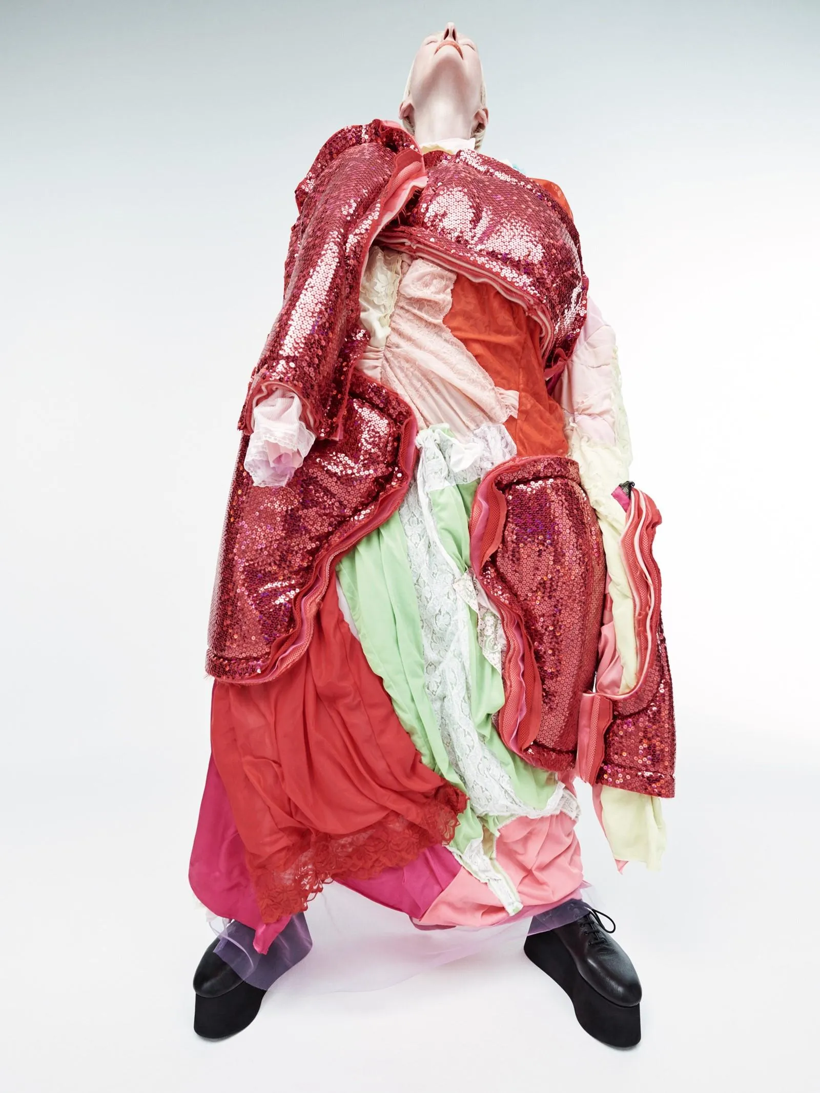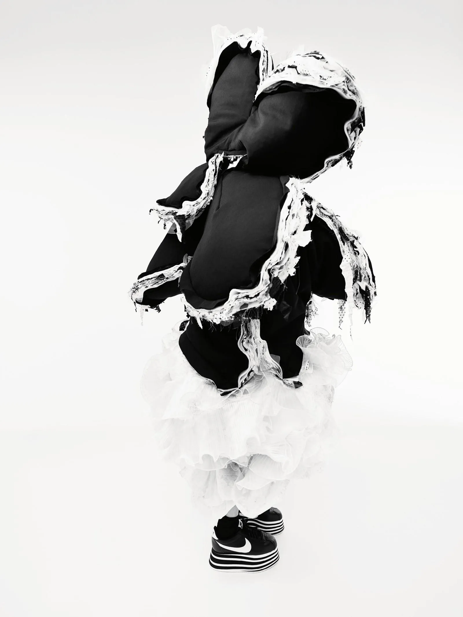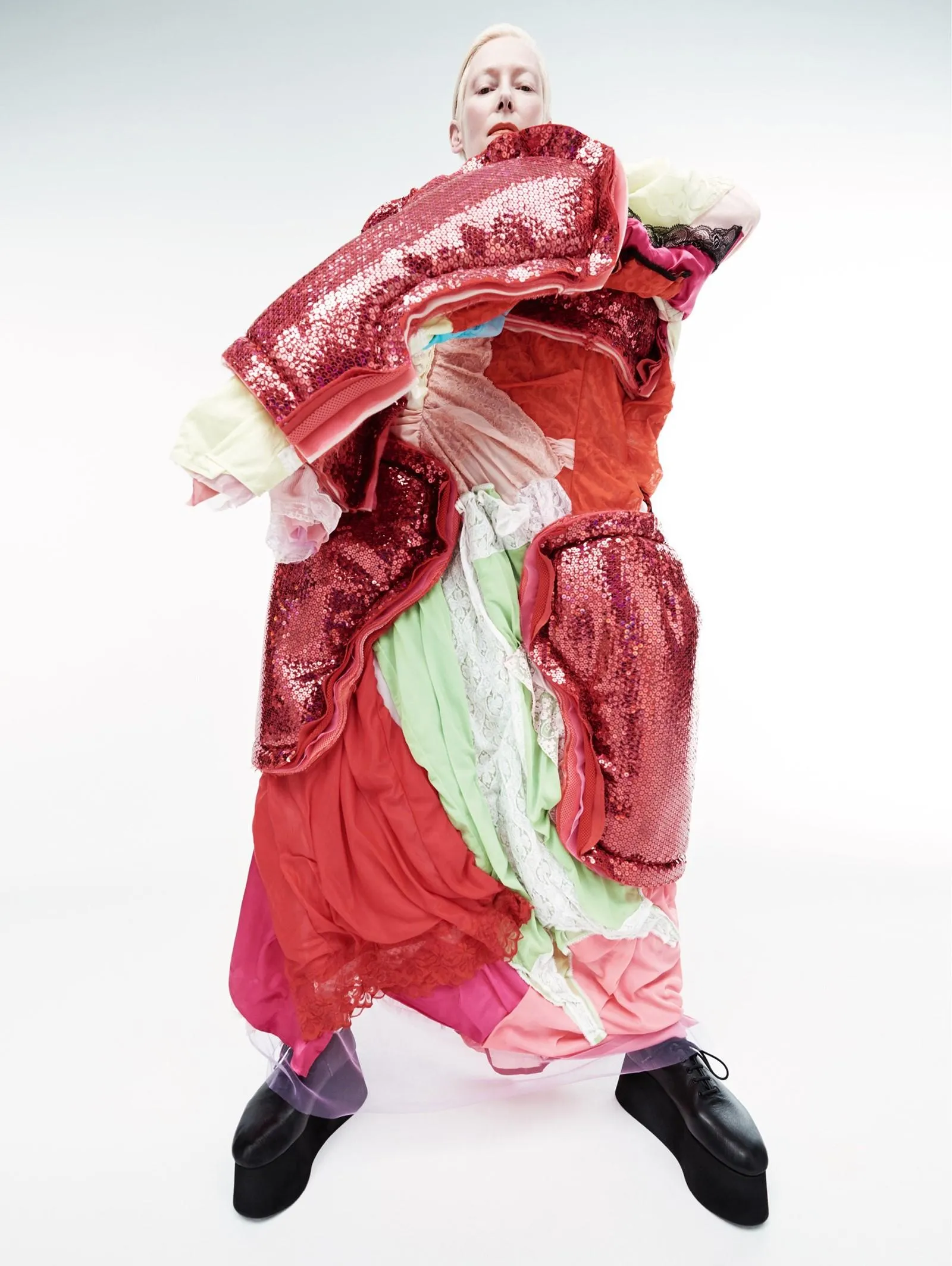 Для інших знімків зірка одягнула over-size костюми у формі квітів і довгі сукні від таких брендів як Prada, Comme des Garçons, Marine Serre, Nike, Balenciaga та інших. Автором дещо сюрреалістичної зйомки став знаменитий фотограф Віллі Вандерперре.