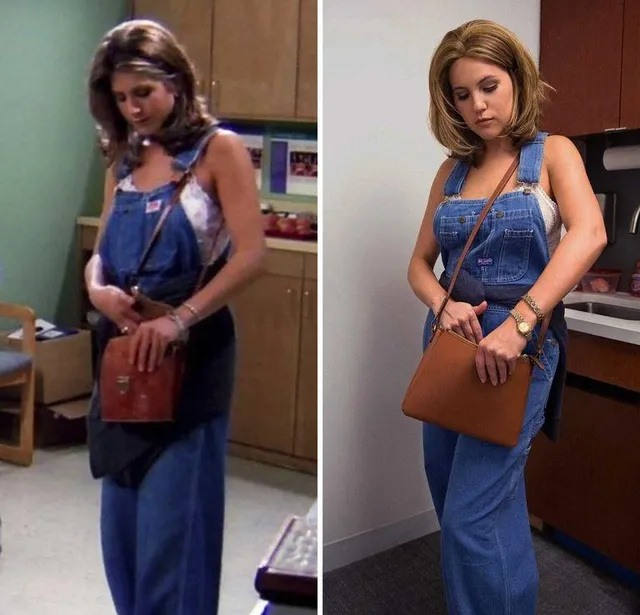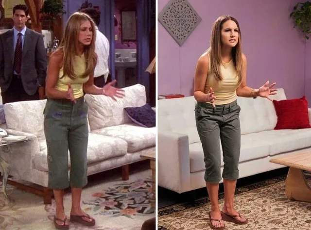 Героїня Дженіфер Еністорн стала своєрідною іконою стилю 90-х та диктувала тренди для тогочасних дівчат. Тепер у моду повертається цей стиль 90-х: біла футболка під сарафан, чокери, джинси-кльош.
