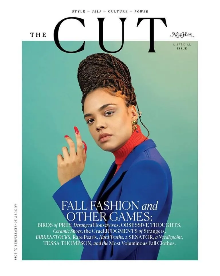 Обкладинку видання Тесса прикрасила в стильному осінньому образі, поєднавши червону водолазку та синій піджак. "Look" доповнювали довгий манікюр червоного кольору та підібрана зачіска з тонких косичок.