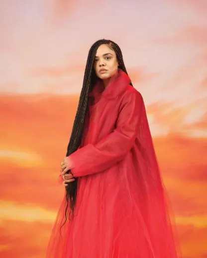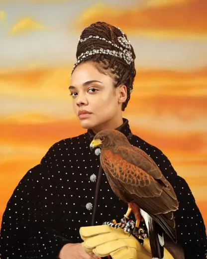 На інших фото Томпсон постає в нарядах від таких преміальних марок як Oscar de la Renta, Ralph Lauren, Gucci та з екстравагантними прикрасами Tiffany & Co.. У фотостудії актриса позувала на фоні з’імпровізованих африканських краєвидів з птахом на руках. Автором фотозйомки став митець Awol Erizku.